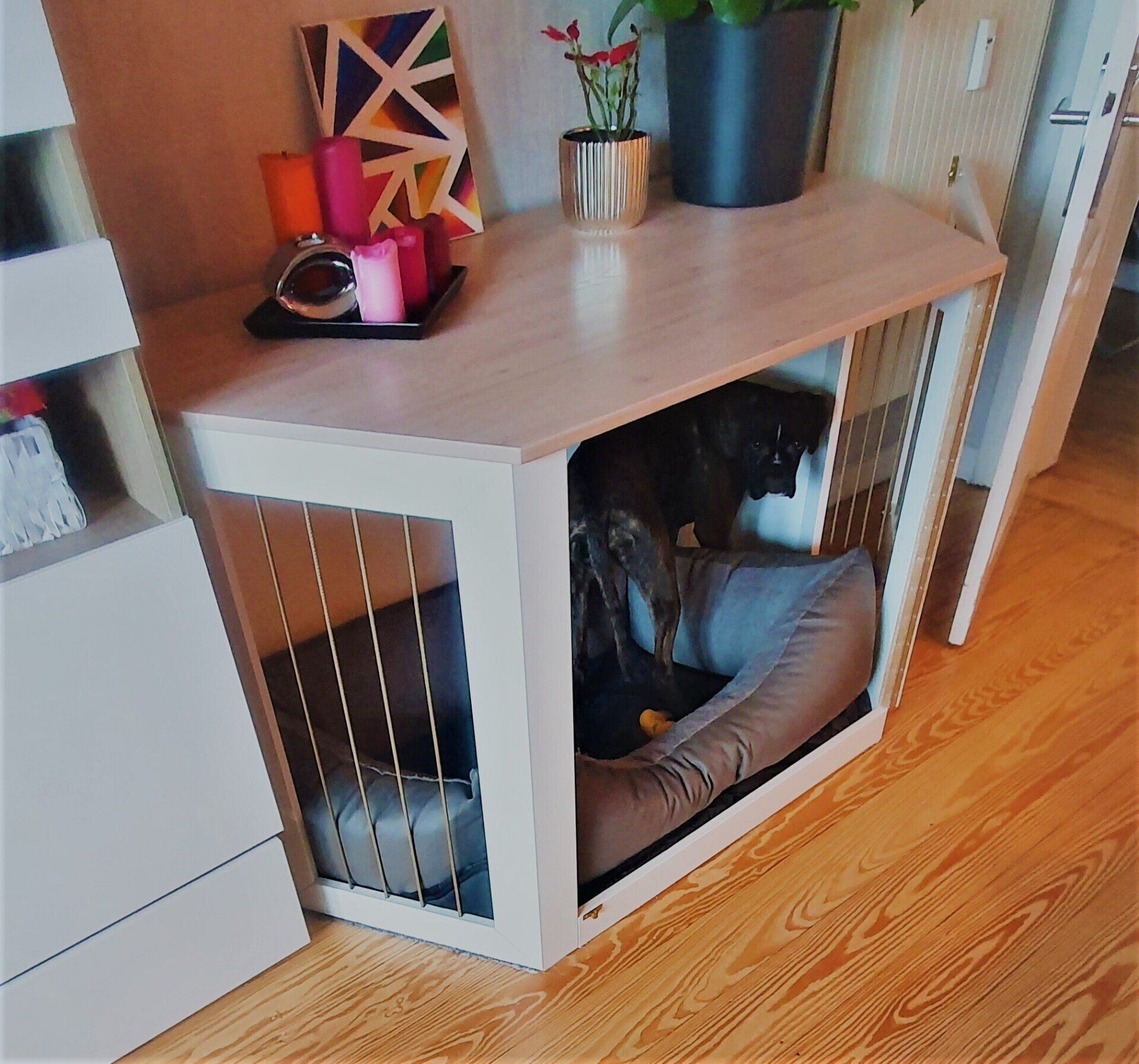 Durch die individuelle Herstellung sind der Gestaltung wie z.B. Schubläden für Leckerlies, Hundespielzeug o. Ä zu integrieren, andere Holzarten zu wählen etc. keine Grenzen gesetzt.
